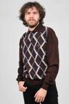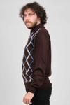 Detay: Düğmeli polo yaka, Desenli, Uzun kollu yün kazak;