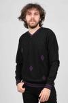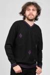 Erkek V Yaka Baklava Desenli Yün Kazak 1343102 Siyah