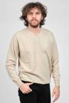 Detay: V yaka, Uzun kollu yün kazak;