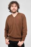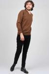 Detay: V yaka, Uzun kollu yün kazak;