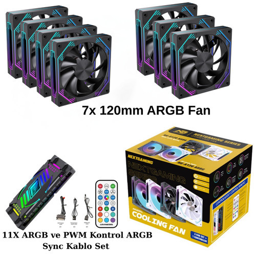 7 adet ARGB Fan Kontrolcü ve Kumandası ile anakart bağlantı kabloları ile birlikte gönderilecektir.