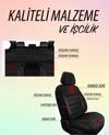 ön arka başlıklar dahil set olarak gönderilmektedir. Montaj kancaları içerisinden çıkmaktadır. 4 mm esnek deri ve döşeme kumaşından üretilmiştir. Ön koltukların arkasında cep bölümü vardır. Ön koltukların yaslanma yerleri sünger ile desteklenmiştir. Ön koltukların yanları sünger ile desteklenerek kanat yapılmıştır. Sportif fitilleri ile şık durmaktadır. Esnek kumaştan üretilmesi nedeniyle potluk yapmaz. Gerdirerek montaj yapılırsa koltuklarınızı iyice sarar. Kutu içeriği 2 adet ön koltuk yaslanma yeri 2 adet ön koltuk oturma yeri 1 adet arka koltuk oturma yeri 1 adet arka koltuk yaslanma yeri 5 adet başlık montaj kancaları ürün standart ölçülerde üretilmiştir. Araca özel üretilmemiştir. Önemli bilgilendirme arka koltuklarında kol dayama olan araçlarda montaj sonrası kol dayama bölümü kapanmakta ve kullanılamamaktadır. Montaj sonrası arka koltuklar bütün olarak yatar ve bütün olarak kalkar. Tüm standart koltuk kılıflarında olduğu gibi, koltuk başlık delikleri ve arka koltuk emniyet kemeri yerleri her araçta standart olmaması nedeniyle açılmamıştır. Makas ile açabilirsiniz. Bize özel değil tüm standart koltuk kılıflarında durum bu şekildedir. Arka kolçağı kullanmak veya arka kısımın ayrı ayrı kullanmak için araca özel koltuk kılıfı yaptırmanız gerekmektedir.