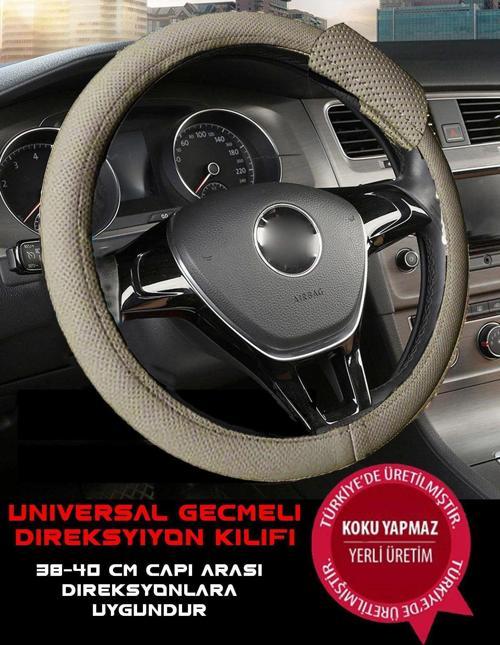 Nice Shop Premium Lüks Geçmeli Direksiyon Kılıfı Kokusuz 38-40 Cm, Bej Suni Deri, Geçmeli Direksiyon Kılıfı