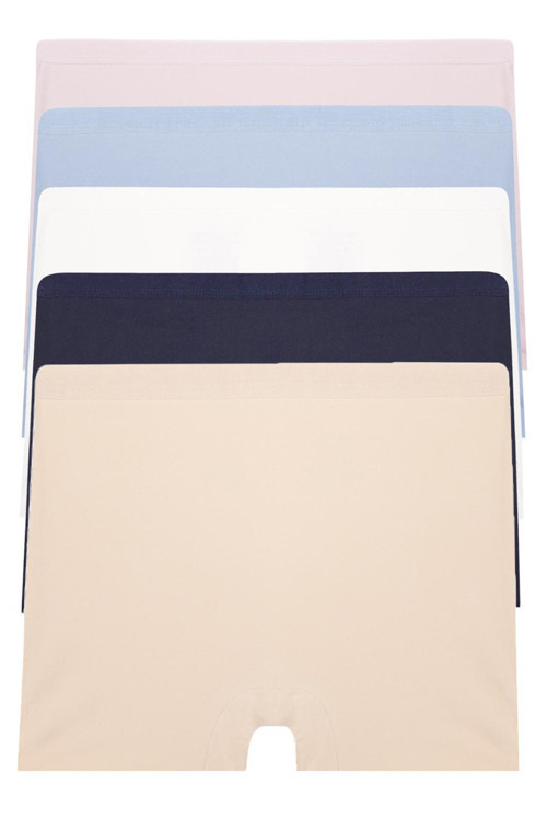 Kadın Boxer Yüksek Bel Dikişşiz Lazer Kesim Esnek Iz Yapmayan 5 li Paket Polyester MAVİ