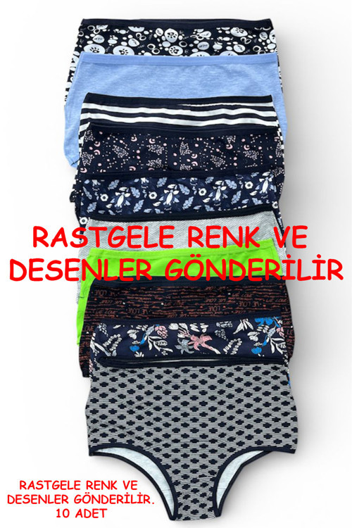 Kadın Külot 10 Lu Paket Yüksek Bel Pamuklu Likrali Rastgele KARISIK RENKLI, KARISIK BASKILI