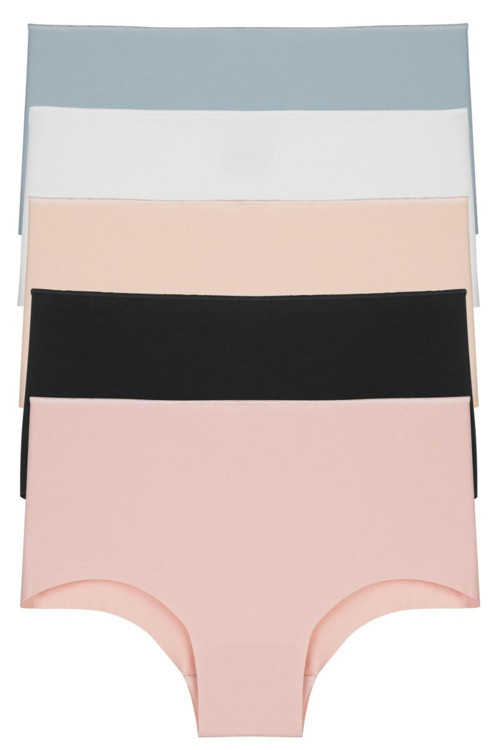 Nicoletta Kadın Külot Yüksek Bel Lazer Kesim Esnek Iz Yapmayan Büyük Beden 5'Li Paket Polyester Mavi