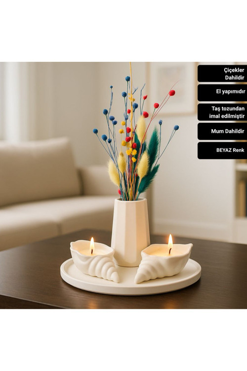 - Her biri 17 cm boyutlarında olan bu vazo ve mum seti, ideal boyutlarıyla dikkat çeker.