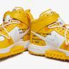 Virgil Abloh'un yaratıcı mirası, Off-White'ın Nike ile yaptığı iş birliğiyle devam ediyor. Piyasaya sürülen en yeni 'Air Force 1 Mid' modeli olan bu 'Varsity Maize' modeli, Flywire kordonlu iki tonlu deri üst kısım, topuklarda işlenmiş ölüm meleği motifleri ve koşu stillerinden ilham alan çivili kauçuk tabanlarla tamamlanıyor. Markalı fermuarlar ve Helvetica yazı baskısı, imza niteliğinde bir son dokunuş katıyor.