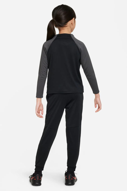 Nike Dri-FIT Academy Pro Tracksuit çocuk eşofman takımı, genç sporcuların sahada ve günlük yaşamda maksimum konfor ve performansla hareket etmeleri için tasarlanmıştır. Teri uzaklaştıran Dri-FIT teknolojisi sayesinde yoğun antrenmanlarda bile kuru kalmayı sağlar. Takım; fermuarlı ceket ve yan cepli pantolondan oluşur. Ceket yüksek yakasıyla soğuk havalarda koruma sunarken, pantolon elastik bel ve iç bağcık detayıyla kişiye özel uyum sağlar. Hafif daralan kesimiyle modern ve sportif bir görünüm sunar.