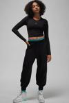 Rakiplerinizi geride bırakacağınızı biliyoruz, öyleyse neden bunu şık bir şekilde yapmayasınız? Bu yumuşak eşofman altı, pistte yanınızdan geçerken herkesin ayakkabılarınızı görebilmesi için geniş bir paçaya sahip. Ayrıca, bol kesimi bacaklarınıza hareket ve nefes alma alanı sağlıyor. MJ'in ikonik Wings kıyafetine gönderme yapan ince renk blokları, markanın mirasını gittiğiniz her yerde yansıtmanızı sağlıyor.
