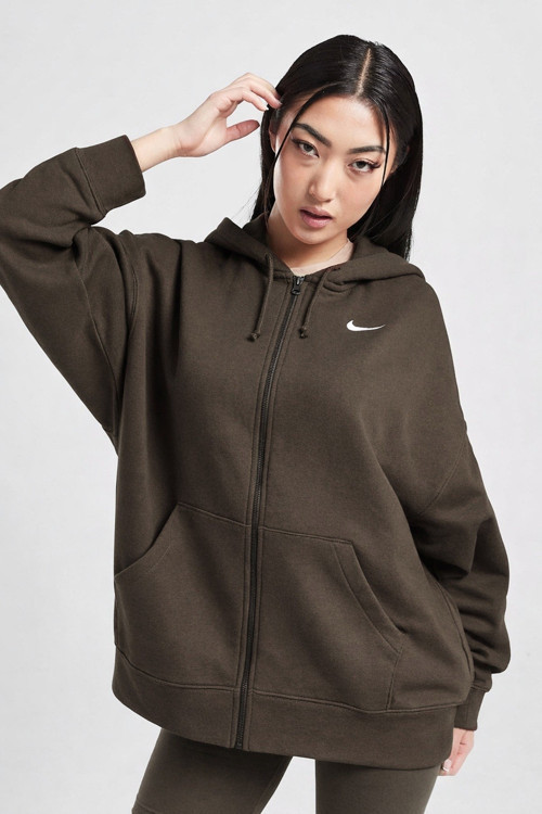 Nike Sportswear Essentials Oversize Fleece Full Zip Hoodie Kadın Oversize Kapüşonlu Sweatshirt Kahverengi