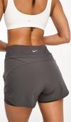 Nike Bliss Dri-FIT şortlar hafif ve esnektir. Antrenman sırasında rahatça hareket etmenizi sağlayan ter önleyici teknolojiye sahiptir. Bu ultra pürüzsüz tasarım, sizi sıkıştırmadan veya sıkmadan destekleyen orta yükseklikte bir bele sahiptir. İç katman vücudunuza uyum sağlarken, dış katman daha boldur ve squat yaparken veya ağırlık kaldırırken sizi korurken hareket özgürlüğü sağlar.