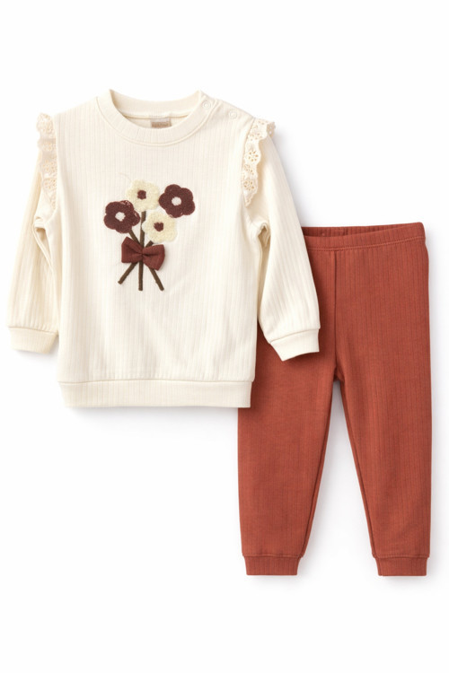Kahverengi Çiçekli Bebe Alt-Üst Takım