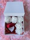 1 Adet Kırmızı Kalp Taşlı Baget Çelik Yüzük) 5 Adet Beyaz Gül