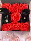 1 Adet Kalp Taşlı Gold Çelik Baget Ayarlanabilir Yüzük 1 Adet Açılır-Kapanır Kalpli Yonca Çelik Gold Kolye 7 Adet Kırmızı Gül Ürünlerimiz çelik üzeri altın kaplamadır. Ürünlerimiz kesinlikle kararma, solma yapmaz. Ürünlerimiz altın kaplama olduğundan dolayı alerji yapmaz. Kalbi Birbiri İçin Atan Çiftlere Özel Olarak Tasarladık. Ürünlerimiz kişiye özel hazırlandığı için iade vedeğişim yapılmamaktadır