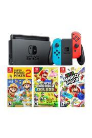 Nintendo Switch Renkli Mavi Kırmızı + Super Mario Maker 2 + Super Marıo Party + Super Marıo Bros U Deluxe