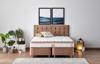 Sütlü kahve renginde soho kumaşı ile yapılmış olan yan bordür, biye ve taşıma kulpları yatağa şık bir görünüm kazandırır .