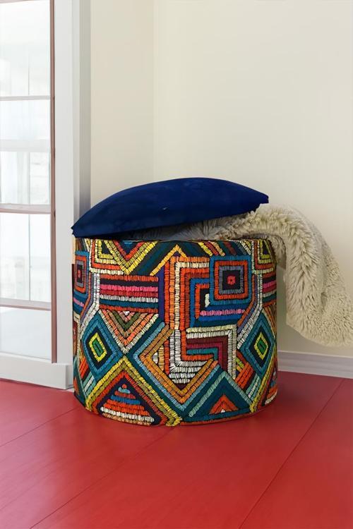 El Yapımı Etnik Desenli Sandıklı Silindir Puf - Çok Amaçlı Dekoratif Bench