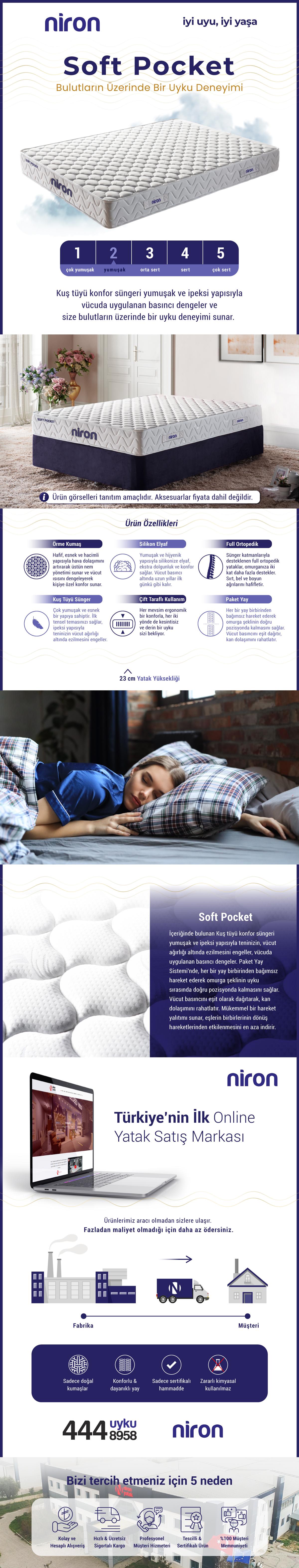 Niron Soft Pocket Full Ortopedik Paket Yaylı Yatak, omurgaya tam destek sağlar, aşırı basıncı sönümleyerek uyku konforunuzu artırır.