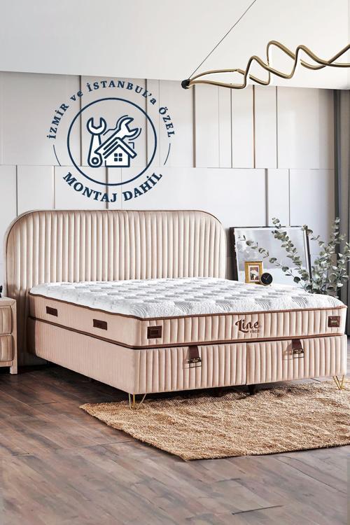 Niron Yatak Line Visco Lüks Yatak Seti Çift Kişilik Yaylı, Visco Süngerli Özel Yatak, Krem Baza Ve Başlık Takımı