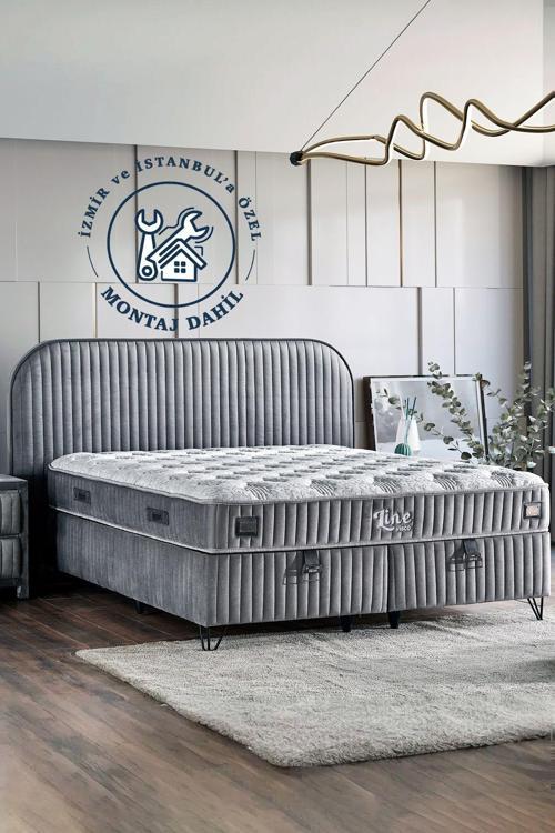 Niron Yatak Line Visco Lüks Yatak Seti Tek Kişilik Yaylı, Visco Süngerli Özel Yatak, Gri Baza Ve Başlık Takımı