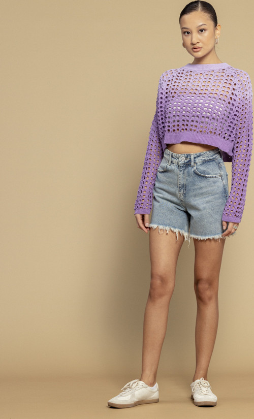 Geniş Ajurlu Örgü: Nefes alan, hafif transparan ve modern bir doku sunan delikli örgü yapısı.