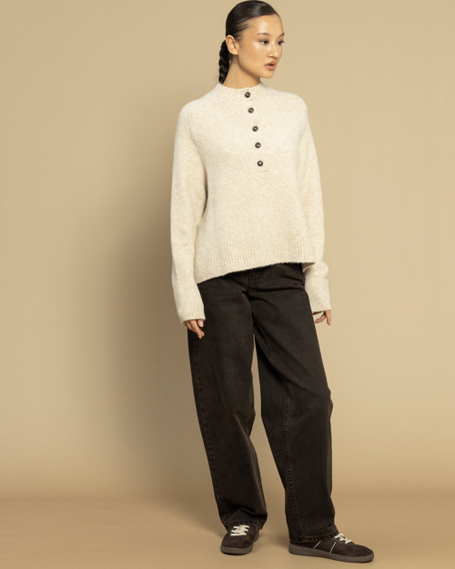 Yumuşak örgü dokusu ve hafif dökümlü yapısı sayesinde gün boyu süren bir rahatlık sunan bu düğmeli kazak, Nisan Triko kalitesiyle stilini detaylarla güçlendiren kadınların favorisi olacak.