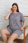 Büyük beden kadınlar için özel olarak tasarlanmış kısa kollu şortlu pijama takımı, rahatlığı ve şıklığı bir araya getiriyor. Yumuşak ve nefes alabilen kumaşı sayesinde dört mevsim konforlu kullanım sunar. Esnek yapısı sayesinde hareket özgürlüğü sağlar ve gün boyu rahat hissettirir.