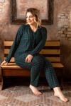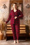 Kadın Uzun Kollu Büyük Beden Kışlık Düğmeli Süet Pijama Takımı