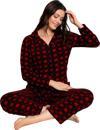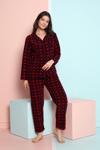 Senfoni Kadın Düğmeli Yaka Uzun Kol Pamuk Likralı Pijama Takımı 6049 -1 Adet Bordo-L - Image 1