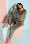Lela Standart Fit Düğmeli Polarlı Bayan Pijama Takımı 6095616 YEŞİL - Image 1