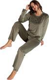 Pijamoni Kadın Süet Önden Düğmeli Likralı Pijama Takımı 17 - 1 Adet Yeşil-XL - Image 1