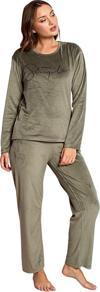 Pijamoni Kadın Süet Önden Düğmeli Likralı Pijama Takımı 17 - 1 Adet Yeşil-XL