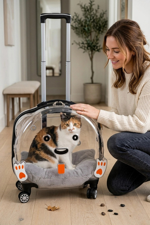 Bu çanta, evcil dostlarınızın seyahat deneyimini lüks ve güvenli bir hale getirir. Şeffaf tasarımı ile her zaman gözünüzde kalır, tekerlekli modeli ise uzun yolculuklarda rahatlık sunar.