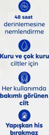 48 saat vücut nemlendirici: Yağlı his bırakmadan cildinize 48 saat derinlemesine nemlendirme sağlar.