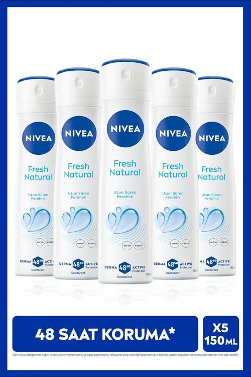 Nivea Nıvea Kadın Sprey Deodorant Fresh Natural 150Ml, Ter Kokusuna Karşı 48 Saat Koruma, Ferahlık, X5 Adet