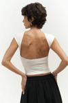Kısa kollu, bisiklet yaka, sırtı açık streç crop