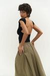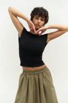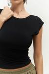 Kısa kollu, bisiklet yaka, sırtı açık streç crop