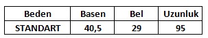 Ürün Beden Tablosu: