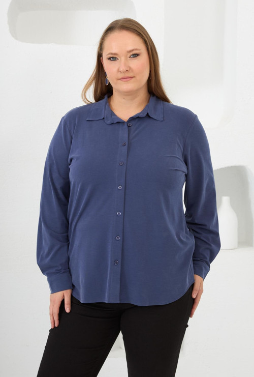 BÜYÜK BEDEN MODAL KUMAŞ GÖMLEK İNDİGO