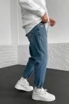 Yıpranmış görünümüyle dikkat çeken kot pantolon, mavi renk tonuyla şıklığı ve rahatlığı bir arada sunuyor.