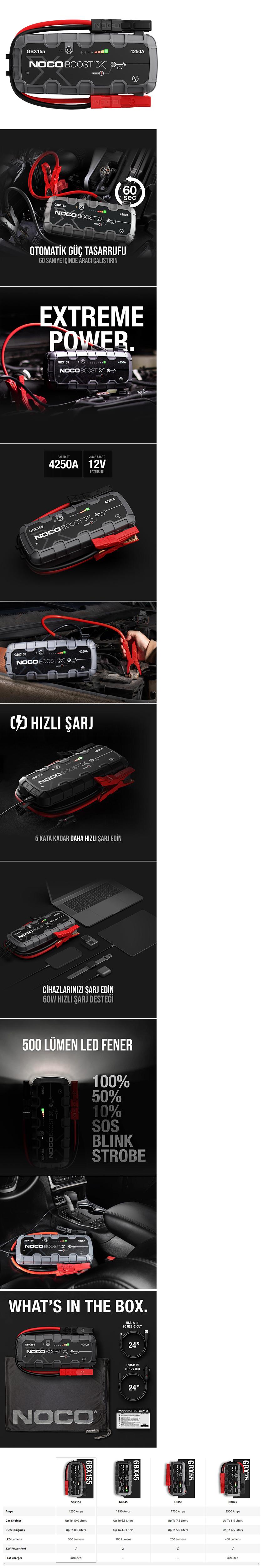 ·         NOCO GBX155 12V 4250Amp Ultrasafe Lityum Akü Takviye + Powerbank + Led Lamba