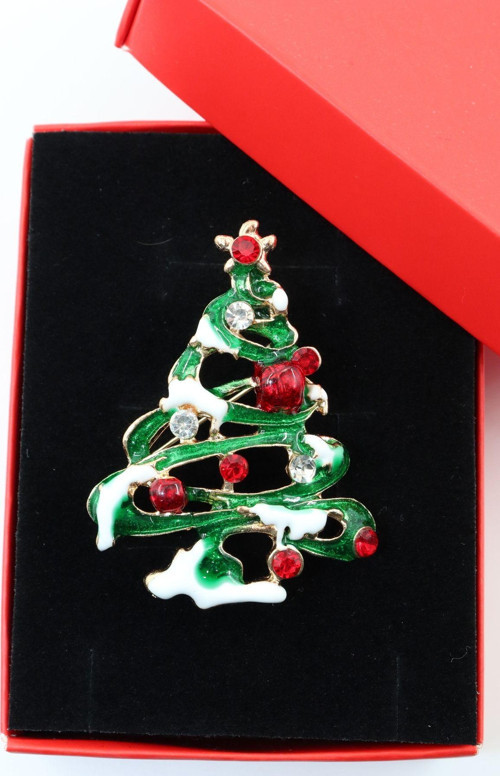 Keeba Noel ağacı broş. Taşlı yılbaşı ağacı broş. Yaka iğnesi broş. Çam ağacı broş. Kadın broş. Broş.