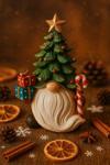 Kesene Noel Baba Sakallı Çam Ağacı Figürlü Yılbaşı Christmas El Yapımı Süs Polyester Hediye Biblo 19 Cm