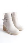 Joy Ayakkabı NOEMI Tokalı Fermuarlı Ortopedik Taban Topuklu Kadın Bot CKT - Krem