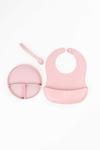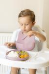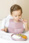 Noibaby 3’Lü Silikon Yemek Seti – Önlük + Diş Kaşıyıcılı Kaşık + Vakumlu Tabak (Pembe)