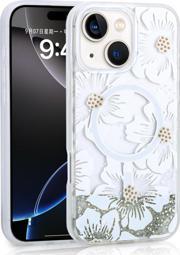 Noir318 İphone 14 Kılıf Sıvılı Simli Baskılı Şeffaf Arka Yüzey Zore Mossa Silikon Kapak - Gri