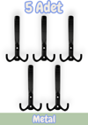 Reis Kulp Noktalı Portmanto Vestiyer Duvar Dolap Elbise Askısı Siyah Metal Mobilya Kapı Askılığı Askılık (5 Adet)