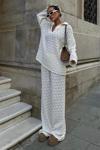 Ekru rengiyle zarif bir görünüm sunan Nolan Regular Ajurlu Pantolon Takım, her ortamda şıklığınızı korumanızı sağlar.