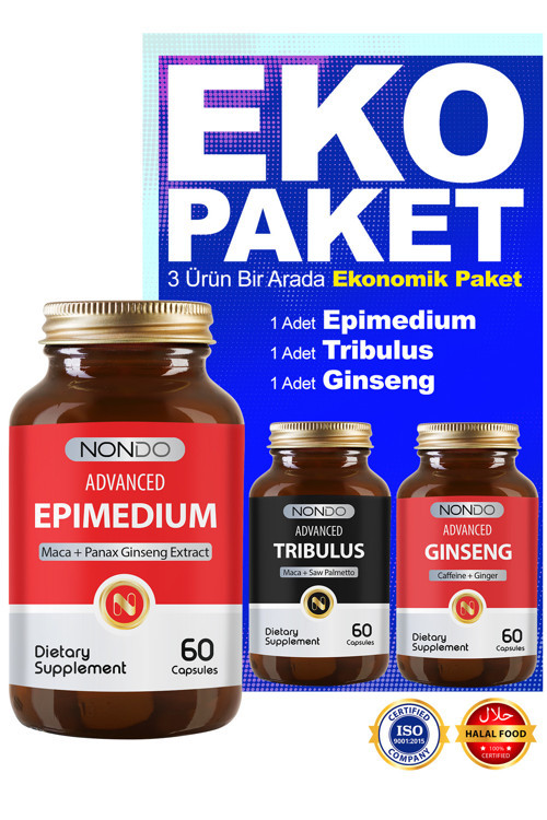 2 KAPSÜL İÇERİĞİ: Epi Demir Dikeni 300 mg L-Arjinin 300 mg L-Karnitin 250 mg Epimedium 200 mg Lepidyum (Maca) 100 mg Kore Ginsengi 100 mg C Vitamini 50 mg E Vitamini 50 mcg Koenzim Q10 50 mg Çinko 15 mg Folik Asit 800 ug selenyum 80ug 2 KAPSÜL İÇERİĞİ: Tribulus Demir Dikeni 400 mg Cüce Palmiye 120 mg Maca 100 mg Kore Ginsengi 100 mg Ginko Biloba 60 mg L-Arjinin 300 mg L-Karnitin 250 mg Koenzim q10 40 mg Selenyum 40 mcg Çinko 15 mg C vitamini 50 mg E vitamini 50 mg Folik asit 400 mcg 2 KAPSÜL İÇERİĞİ: Ginseng Kafein 200 mg Kore Ginsengi (Panax Ginseng) 200 mg Keçi Boynuzu (Ceratonia Silgqua) Meyve Ekstresi 200 mg L-arginin 200 mg Zencefil (Zingiber officinale) kökü ekstresi 150 mg Koenzim Q10 30 mg B12 Vitamini 0,01 mg KULLANIMI: Yetişkinler için gıda hapı olarak günde 2 kapsülün kullanılması tavsiye edilir.